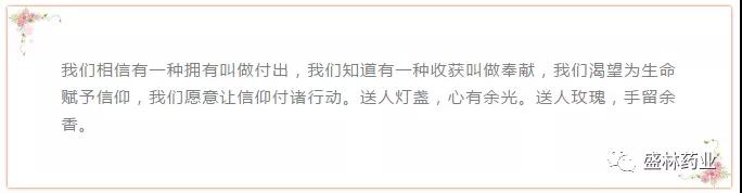 命運(yùn)無情人有情,本次捐款活動共募集人民幣16110元,善款有限,愛心無價。此次愛心捐款活動,體現(xiàn)了盛林藥業(yè)公司領(lǐng)導(dǎo)與員工之間團(tuán)結(jié)互助的精神和手足情誼。同時,在此基礎(chǔ)上,盛林藥業(yè)將以“慈善奉獻(xiàn)不停息,愛心接力永相傳的精神”熱心參與社會公益事業(yè)和慈善事業(yè),積極向社會捐款捐物、扶貧幫困,進(jìn)一步發(fā)揚(yáng)盛林藥業(yè)教育奉獻(xiàn)愛心這一優(yōu)良傳統(tǒng)。